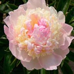 PINK PARFAIT - Vivid pink, full double, lightly fragrant, huge blooms with silvered petal edges. | PRAIRIE CHARM - Semi-double; clear yellow and at the base of each petal is a large, dark red-purple flare. All this encircles a prominent center of creamy white and green. | RASPBERRY SUNDAE - Large double bomb of cream with raspberry at the petal edges; as the plant matures, more raspberry pink is evident throughout the bloom; delightful fragrance. |
