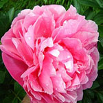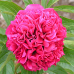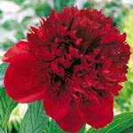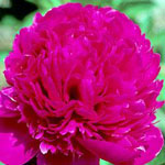 | RED CHARM - Gigantic double bomb piled high with a mass of red petals framed with a fan of wide red guard petals; old rose fragrance with a hint of cloves; deep, glossy dark red coloration. | SARAH BERNHARDT - Rich, rose-pink double, edged a little lighter pink; a few petals show crimson edges; a favorite pink double. | TOP BRASS - Wide ivory guard petals surround a large double bomb flower of canary yellow highlighted with light pink petaloids in the center; light fragrance. | VICTOIRE DE LA MARNE - Very large purplish-red double with lighter edges. It has good stems and foliage. |