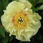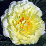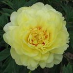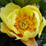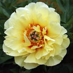 | GOLDILOCKS - This pretty blonde is a full-bodied bomb double with a ruffled yellow skirt and a great sense of style. | GREEN HALO - Its typical semi-double flowers features rare apple-green guard petals that create the base for a central tuft of creamy white petals and petloides. | GREEN LOTUS single creamy white petals with a hint of green and sometimes pink around a center bowl of yellow staminodes. | HONEY GOLD - Broad creamy guard petals surround a large mass of wavy, pale yellow staminodes, then from the center creamy white petals crown this striking white and gold peony. |