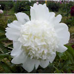 | WHITE LULLABY - Double lactiflora. White blooms have a very slight amount of red candy streaking, good substance, stamens. |
